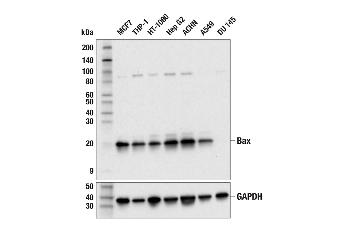 Bax (E2Q7G) Rabbit Monoclonal Antibody (BSA and Azide Free) recognizes endogenous levels of total Bax protein.