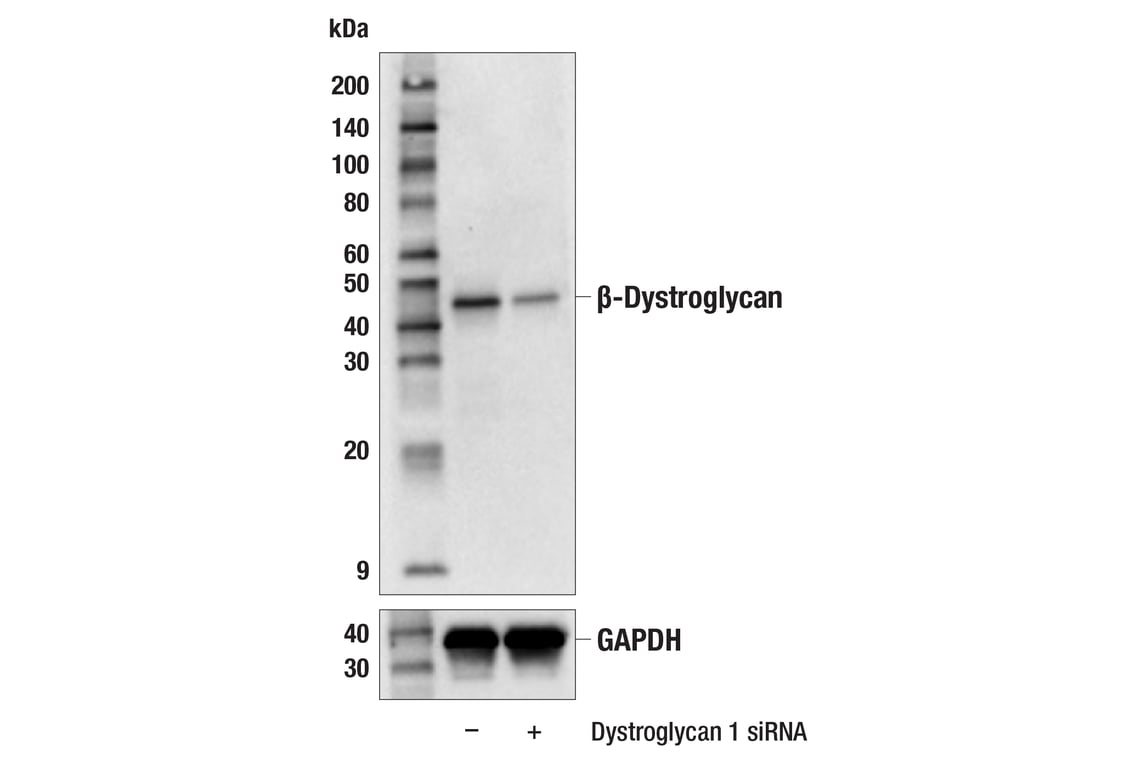 beta-Dystroglycan (E3Z8H) Rabbit Monoclonal Antibody recognizes endogenous levels of total β-dystroglycan protein. This antibody does not cross-react with α-dystroglycan protein.