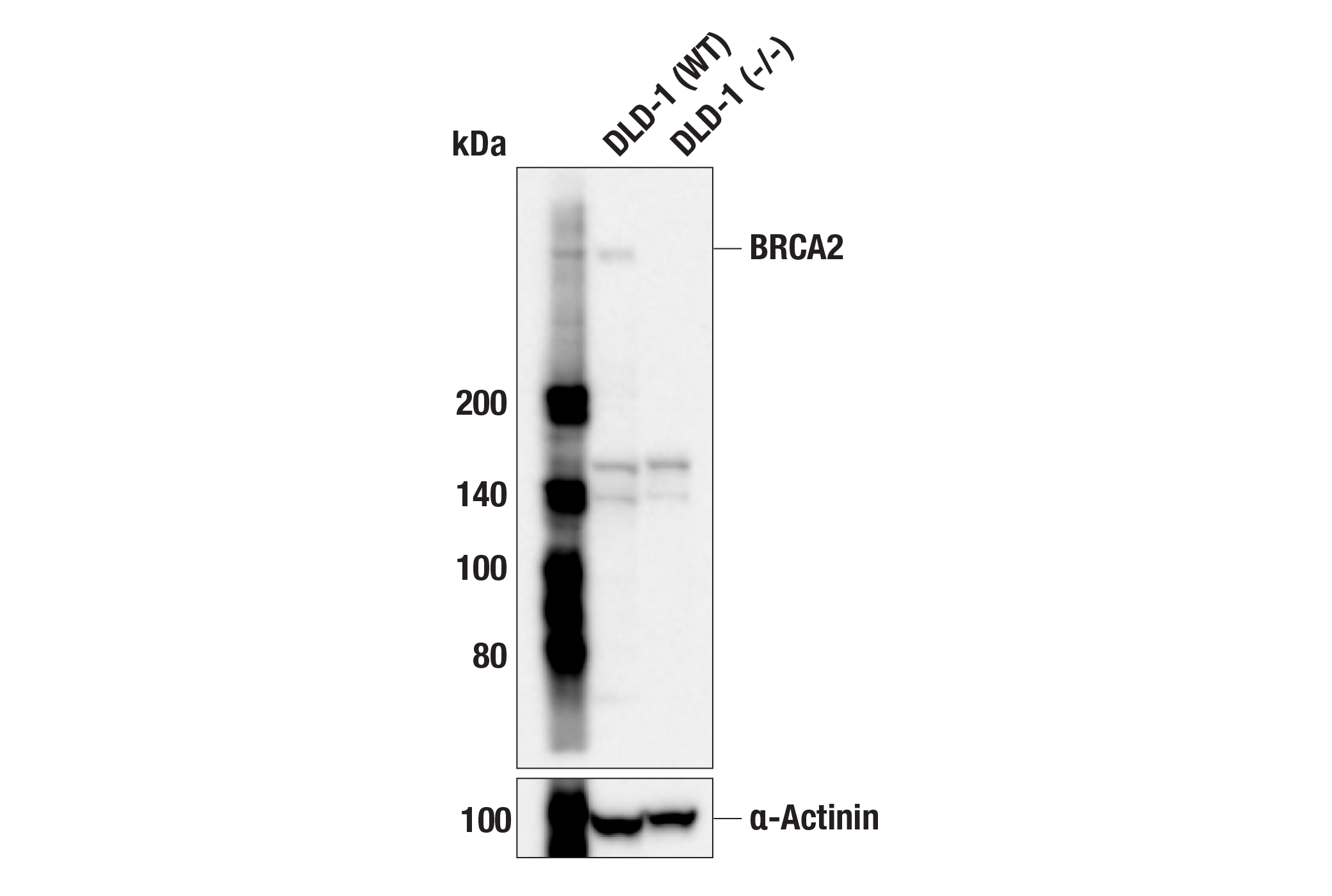 BRCA2 (F8Q6L) Rabbit Monoclonal Antibody recognizes endogenous levels of total BRCA2 protein. This antibody detects approximately 140 kDa and 160 kDa proteins of unknown identity in some cell lines.