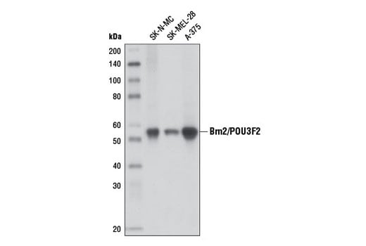 Brn2/POU3F2 (D2C1L) Rabbit Monoclonal Antibody recognizes endogenous levels of total Brn2/POU3F2 protein.