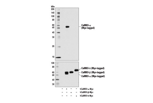 CaMKII-alpha (6G9) Mouse Monoclonal Antibody recognizes endogenous levels of total CaMKII-α protein. This antibody does not cross-react with CaMKII-β or CaMKII-δ proteins.