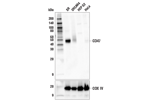 CD47 (D3O7P) Rabbit Monoclonal Antibody (BSA and Azide Free) recognizes endogenous levels of total CD47 protein.