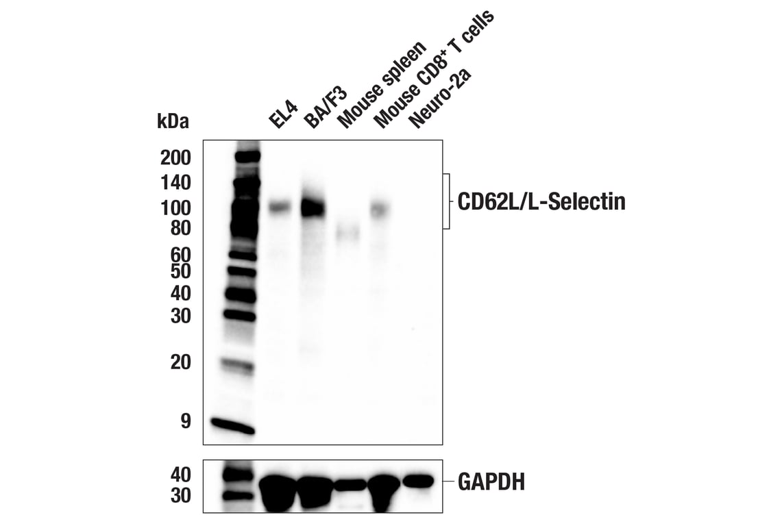 Due to cell type-specific glycosylation, the actual molecular weight of L-Selectin differs between cell types and can range from 60 kDa in lymphocytes up to 100 kDa in neutrophils (7).