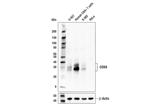 CD69 (E1U2O) Rabbit Monoclonal Antibody recognizes endogenous levels of total CD69 protein.