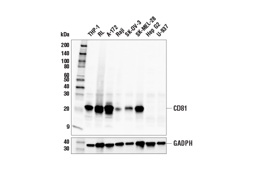 CD81 (E2K9V) Rabbit Monoclonal Antibody recognizes endogenous levels of total CD81 protein.