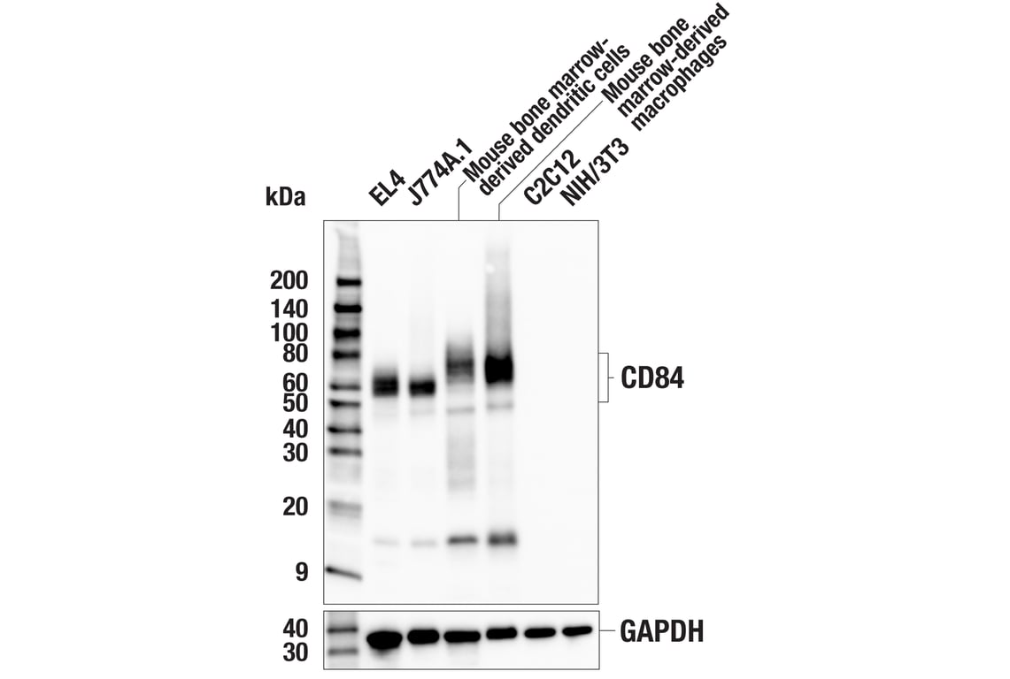 CD84 (E4F2N) Rabbit Monoclonal Antibody recognizes endogenous levels of total CD84 protein.