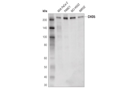 CHD5 (D2F9Q) Rabbit Monoclonal Antibody recognizes endogenous levels of total CHD5 protein.