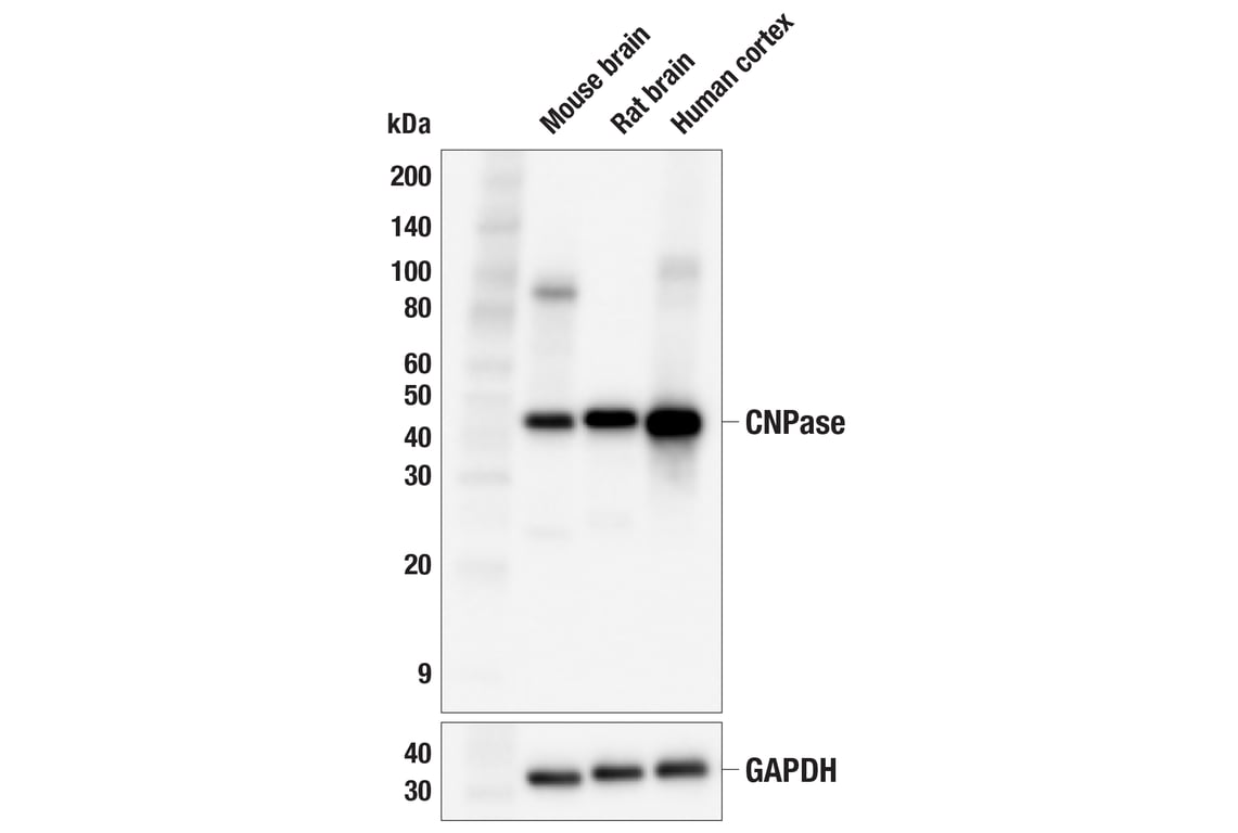 CNPase (F6Y2X) Mouse Monoclonal Antibody recognizes endogenous levels of total CNPase protein.