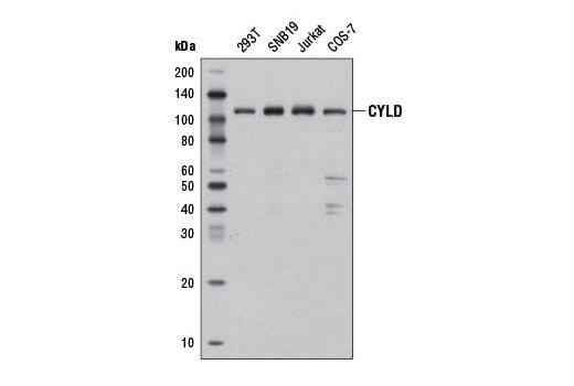 CYLD (D6O5O) Rabbit Monoclonal Antibody recognizes endogenous levels of total CYLD protein.