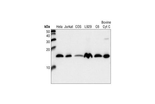 The antigen sequence used to produce this antibody shares 100% sequence homology with the species listed here, but reactivity has not been tested or confirmed to work by CST. Use of this product with these species is not covered under our Product Performance Guarantee.