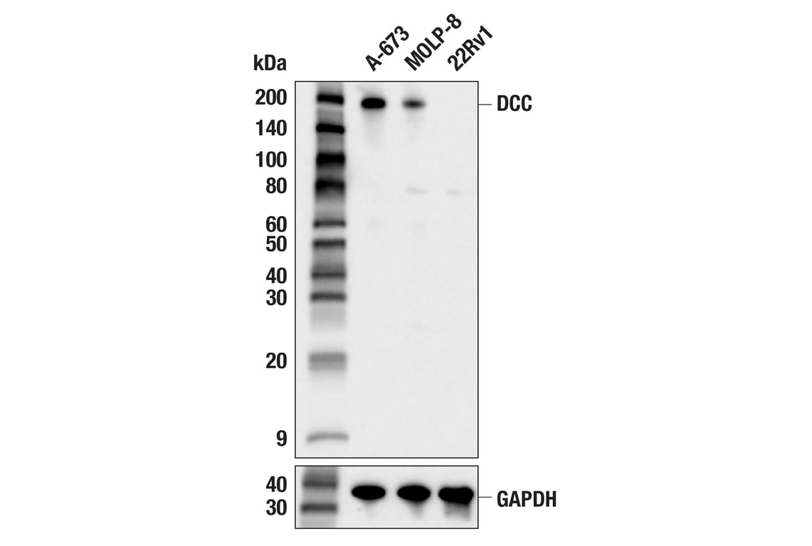 DCC (E4U1X) Rabbit Monoclonal Antibody recognizes endogenous levels of total DCC protein.