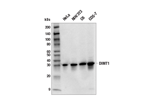 DIMT1 (E7O5R) Rabbit Monoclonal Antibody recognizes endogenous levels of total DIMT1 protein.