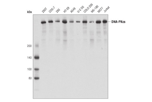 DNA-PKcs (3H6) Mouse Monoclonal Antibody (BSA and Azide Free) recognizes endogenous levels of total DNA-PKcs protein.