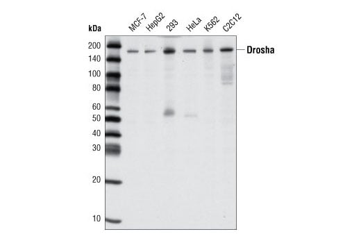 Drosha (D30F3) Rabbit Monoclonal Antibody detects endogenous levels of total Drosha protein.
