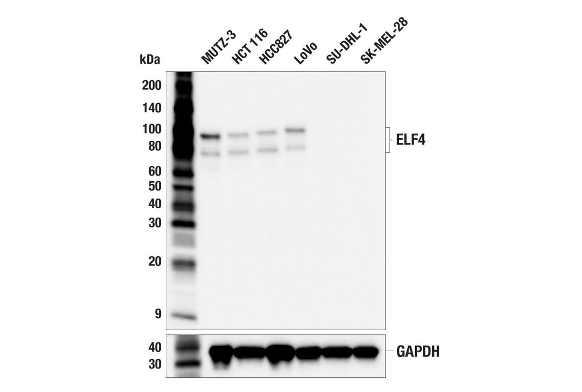 ELF4 (F8H6X) Rabbit Monoclonal Antibody recognizes endogenous levels of total ELF4 protein.