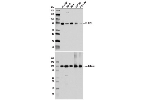 ELMO1 (D4K2E) Rabbit Monoclonal Antibody recognizes endogenous levels of total ELMO1 protein.