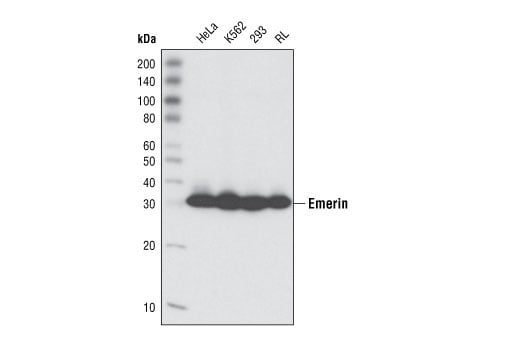 Emerin (L12) Antibody detects endogenous levels of total Emerin protein.