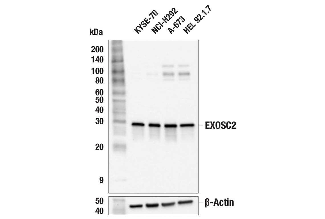 EXOSC2 (F6Y3J) Rabbit Monoclonal Antibody recognizes endogenous levels of total EXOSC2 protein. This antibody detects a 90 kDa protein of unknown origin.