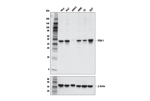 FEN-1 (E4S8C) Rabbit Monoclonal Antibody recognizes endogenous levels of total FEN-1 protein.