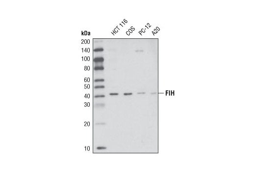 FIH (D19B3) Rabbit Monoclonal Antibody detects endogenous levels of total FIH protein.