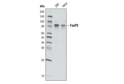 FoxP2 (D55H9) Rabbit Monoclonal Antibody detects endogenous levels of total FoxP2 protein.