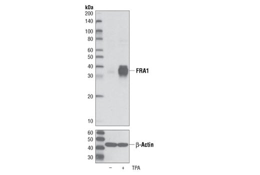 FRA1 (D80B4) Rabbit Monoclonal Antibody (BSA and Azide Free) detects endogenous levels of total FRA1 protein. This antibody does not cross react with other FOS proteins, including FRA2, c-Fos and FosB.