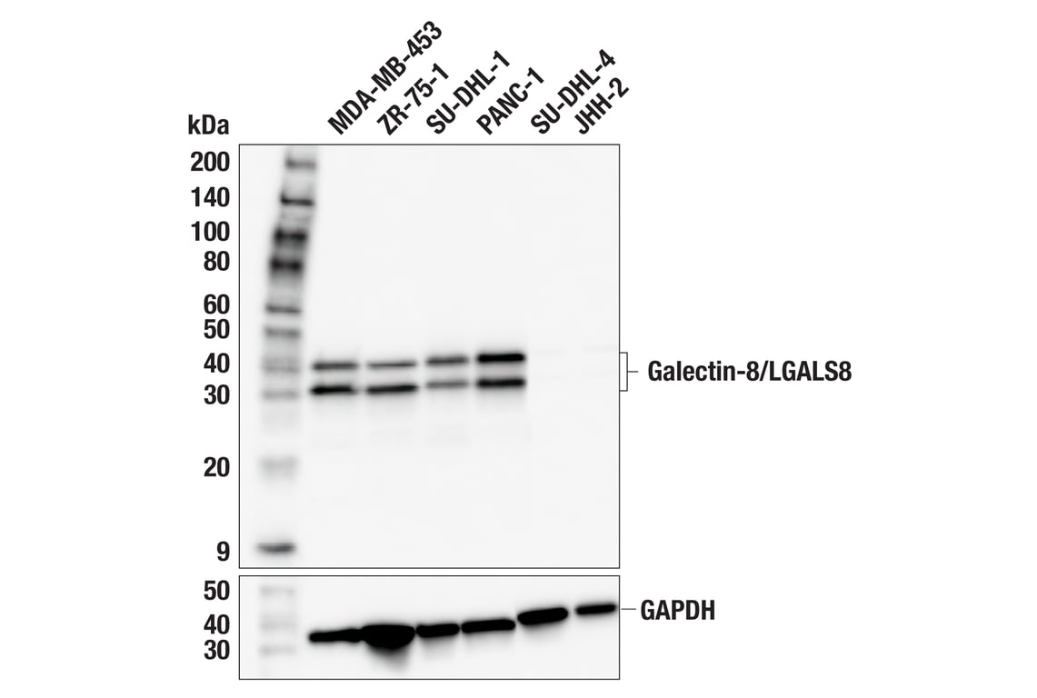 Galectin-8/LGALS8 (F9O3T) Rabbit Monoclonal Antibody recognizes endogenous levels of total Galectin-8/LGALS8 protein.