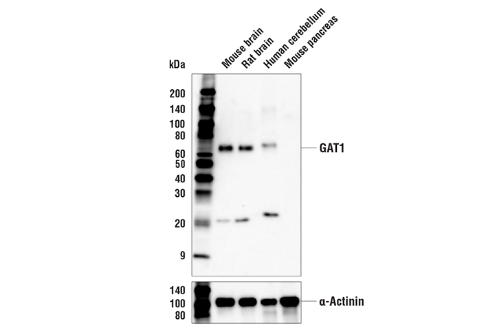 GAT1 (E7J1B) Rabbit Monoclonal Antibody recognizes endogenous levels of total GAT1 protein.