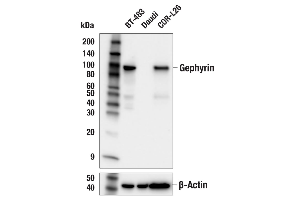 Gephyrin (E8T6V) Rabbit Monoclonal Antibody recognizes endogenous levels of total gephyrin protein.