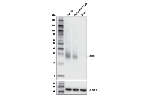 GITR (D5V7P) Rabbit Monoclonal Antibody (BSA and Azide Free) recognizes endogenous levels of total GITR protein.