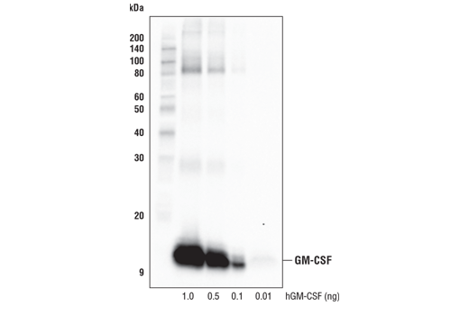 GM-CSF (E8I1V) Rabbit Monoclonal Antibody recognizes endogenous levels of total GM-CSF protein.