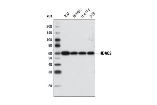 HDAC1 and HDAC2 are highly homologous and are involved in histone deacetylation, chromatin remodeling and transcriptional repression (8-10). Both proteins are found together in numerous complexes including the nucleosome remodeling and deacetylation complex (NuRD), MeCP1, and the mSin3A corepressor complex.