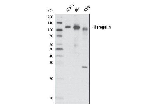 Heregulin Antibody detects endogenous levels of total heregulin proteins. This antibody does not cross-react with other family members.