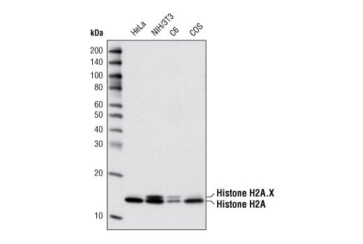 Histone H2A (L88A6) Mouse Monoclonal Antibody detects endogenous levels of total histone H2A protein. This antibody also detects histone H2A.X.