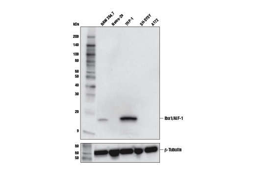 Iba1/AIF-1 (E4O4W) Rabbit Monoclonal Antibody (BSA and Azide Free) recognizes endogenous levels of total Iba1/AIF-1 protein.
