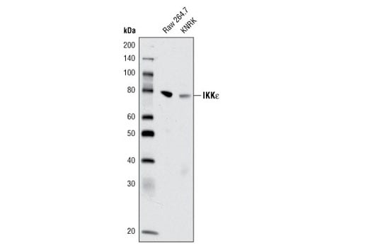 IKK epsilon (D61F9) Rabbit Monoclonal Antibody (BSA and Azide Free) detects endogenous levels of total IKKε protein.