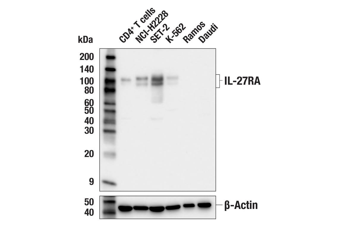 IL-27RA (E3L6U) Rabbit Monoclonal Antibody recognizes endogenous levels of total IL-27RA protein.