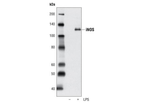 NO catalyzed by iNOS is involved in host defense against protozoa, bacteria, fungi, and viruses. Unlike constitutively expressed eNOS and nNos, iNOS is not usually expressed in quiescent cells. iNOS is transcriptionally induced in response to bacterial endotoxins such as LPS and proinflammatory cytokines in macrophages and various other cell types. Transcription factors involved in iNOS transcription include NF-κB, AP-1, and STAT. Different signaling pathways either promote (Jak1/2, PKC, c-Raf, p38 MAP kinase, and p44/42 MAP kinase) or inhibit (PI3 kinase) iNOS expression depending on stimulus and cell type (4).