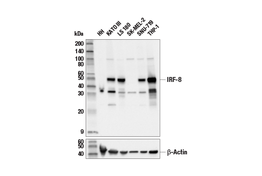 IRF-8 (E8X4K) Rabbit Monoclonal Antibody (BSA and Azide Free) recognizes endogenous levels of total IRF-8 protein.