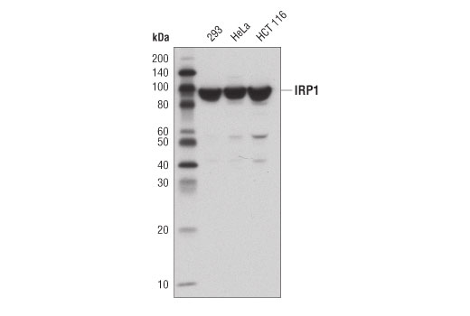 IRP1 (D6S4J) Rabbit Monoclonal Antibody recognizes endogenous levels of total IRP1 protein.