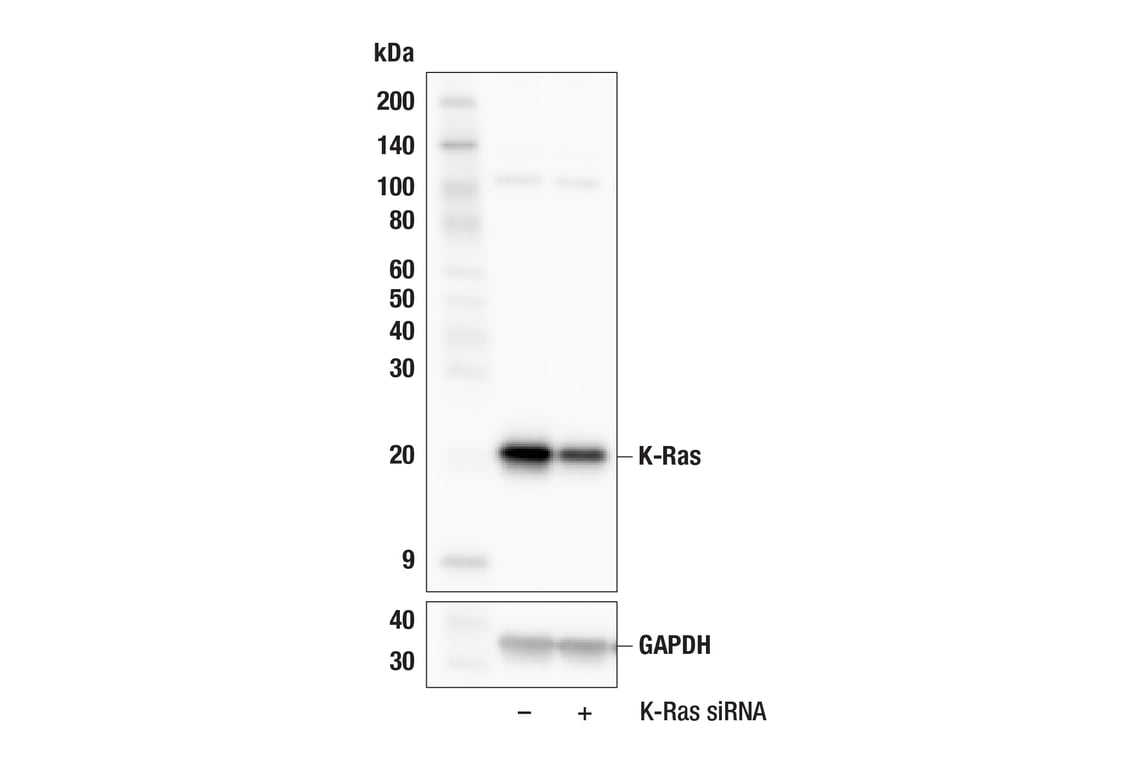 K-Ras (F2N1V) Rabbit Monoclonal Antibody recognizes endogenous levels of total K-Ras protein. This antibody does not cross-react with other Ras proteins. This antibody detects a 110 kDa protein of unknown identity in some cell lines.