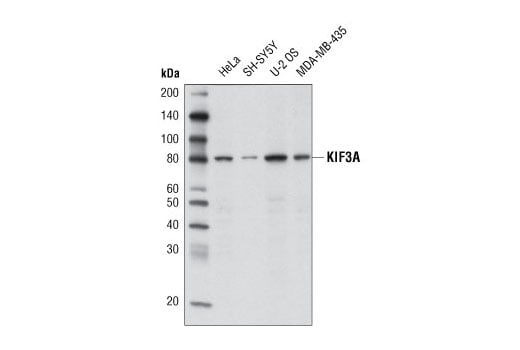 KIF3A (D7G3) Rabbit Monoclonal Antibody recognizes endogenous levels of total KIF3A protein.