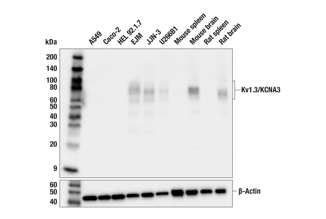 Kv1.3/KCNA3 (F2R6N) Rabbit Monoclonal Antibody recognizes endogenous levels of total Kv1.3/KCNA3 protein.