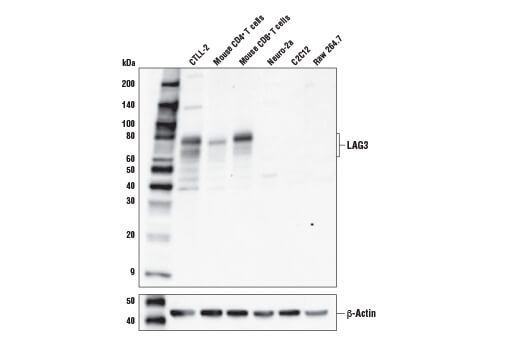LAG3 (E5S8V) Rabbit Monoclonal Antibody recognizes endogenous levels of total LAG3 protein.