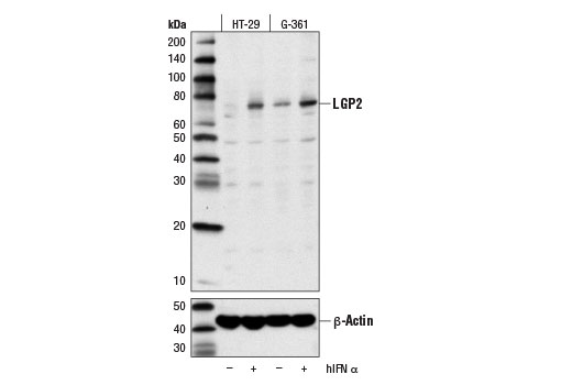 LGP2 (D3I3L) Rabbit Monoclonal Antibody recognizes endogenous levels of total LGP2 protein.