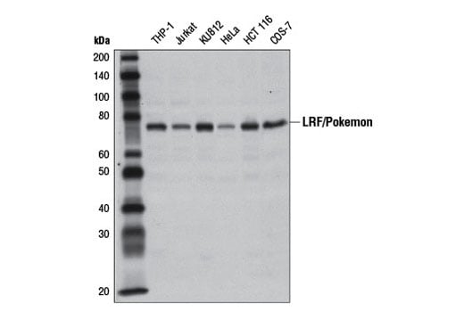 DKFZp547O146; Factor binding IST protein 1; Factor that binds to inducer of short transcripts protein 1; FBI-1; FBI1; HIV-1 1st-binding protein 1; HIV-1 inducer of short transcripts binding protein; Leukemia/lymphoma-related factor; LRF; lymphoma related factor; MGC99631; POK erythroid myeloid ontogenic factor; Pokemon; Pokemon 1; POZ and Krueppel erythroid myeloid ontogenic factor; TIP21; TTF-I-interacting peptide 21; ZBT7A; ZBTB7; ZBTB7A; zinc finger and BTB domain containing 7A; zinc finger and BTB domain containing 7A, HIV-1 inducer of short transcripts binding protein; Zinc finger and BTB domain-containing protein 7A; Zinc finger protein 857A; ZNF857A