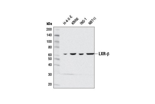 LXR-beta (D6M9D) Rabbit Monoclonal Antibody recognizes endogenous levels of total LXR-β protein.