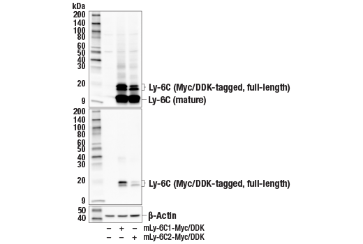 Ly-6C (E7L3S) Rabbit Monoclonal Antibody recognizes endogenous levels of total Ly-6C1 and Ly-6C2 proteins. This antibody also cross-reacts with an unidentified protein of 90 kDa in some cell lines.