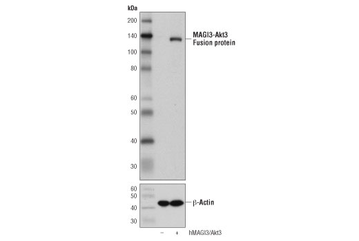 MAGI3-Akt3 Fusion Protein (D4D3P) Rabbit Monoclonal Antibody recognizes transfected MAGI3-Akt3 fusion protein.