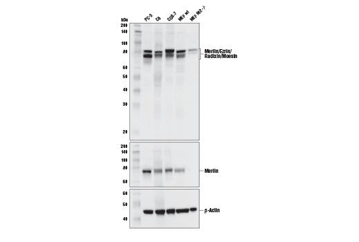 | MW (kDa) | 70 Merlin. 75 Moesin. 80 Ezrin & Radixin. |
